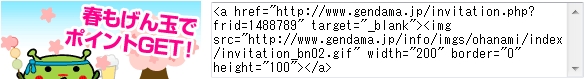 ![]() よかったらココからげん玉に登録してくださいネ!ココから登録すると25円もらえちゃう♪ 重大なお知らせ このブログ(げん玉ちょきんばこ)より、ご登録いただいた人の中に 私の紹介になっていない人がいる可能性があります。 私の紹介でげん玉に登録したことになっていないと、 こちらで確認がとれないので「げん玉用友達紹介サイト」が作れません。 対象者 ひよこ様(ID:1641135) と あけちゃん様(ID:1644080)の2名様です。 お2人のうち心当たりがある方は、この記事にコメントください。 コメントいただければ、友達紹介サイトをお作り致します。 というのも、お花見特集で紹介されている「友達紹介バナー」のコードが まったく違う人のidが表示されていて、それに気づかず今までそのコードを そのまま貼って紹介していたからです。 これがそのコードの画像 2行目の1488789は私ではなく全くの別人。現在は訂正しています。 ![]() よかったらココからげん玉に登録してくださいネ!ココから登録すると25円もらえちゃう♪